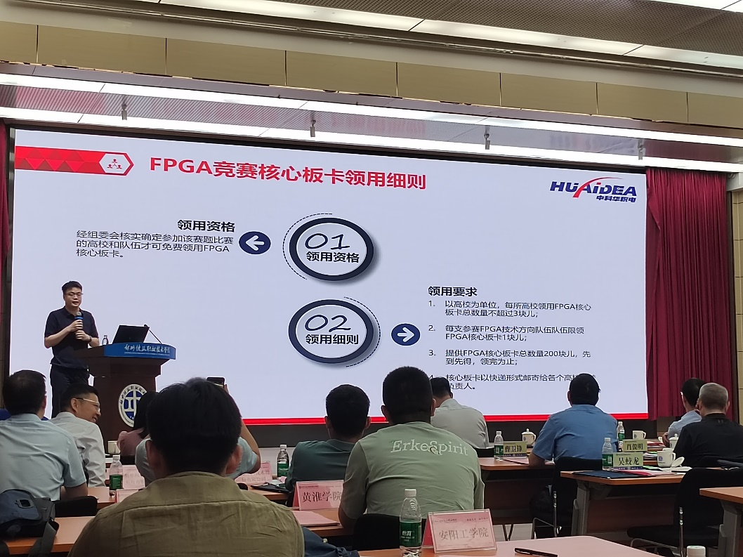 会上邀请河南省赛的龙科中芯、中科华积电、智茂电子科技等三家公司,为参会教师分析了本次企业赛题命题方向,以及能提供的比赛板卡支持。
