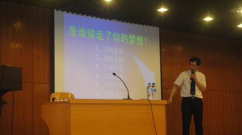 为了丰富我系员工在公司心理健康周的活动,6月3日晚19:00——21:00在外语楼二楼多功能报告厅,资讯系邀请清华大学EMBA总裁班特聘教授吴永生教授做专题心理讲座——是谁偷走了你的梦想?09级辅导员刘叶青老师和我系二百余名员工一同聆听了报告。