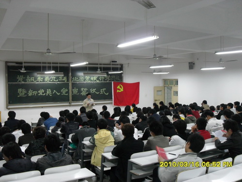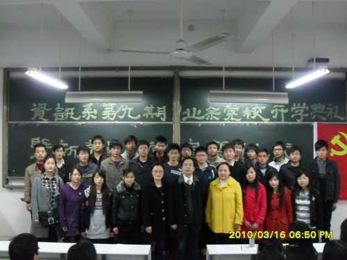 2010年3月16日晚六点半,资讯系第九期业余党校开课典礼暨新党员宣誓仪式在资讯楼107隆重举行,系党支书记魏民同志,党总支副书记王新平同志、各员工支部书记和以及全体辅导员出席了会议,大会由党总支副书记王新平同志主持。