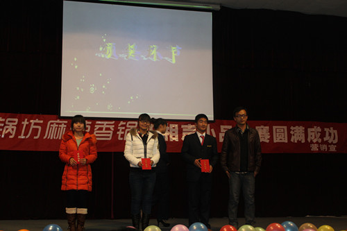 经过评委认真的评审,营销系的相声《我开始努力了》摘得桂冠,荣获二等奖的是文法系的小品《选妃》和资讯系的小品《唐伯虎点秋香》,获得三等奖的是营销系的小品《超幸福鞋垫》、营销系的小品《营策达人销》和文法系的相声《新兴相声》。获得最佳创意奖的是资讯系的小品《免费相亲》,文法系的相声《伟大的事业》和资讯系的相声《戏说甄嬛》获得优秀奖。