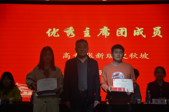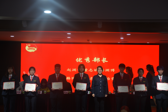 首先,大会进行第一项,全体起立,奏唱共青团团歌。随后,为二十六届优秀干事、优秀部门、优秀部长颁发证书并拍照留念。