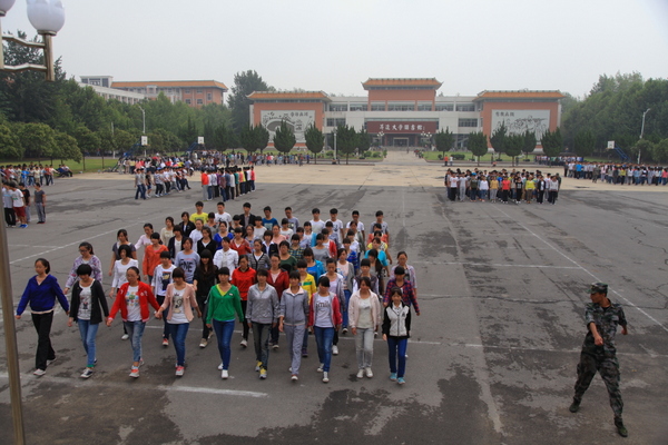 今年的新生军训从9月6日开始,到9月18日结束,共13天时间。参加军训的新生共5700多人,编为8个军训连,65个方队。在短短的十几天的时间里,参训新生不仅要接受严格的军事技能训练,还要参加庄严的升国旗仪式、开展劳动教育、进行文化复查、学习创办人的办学理念和军事理论知识等,最后要举行隆重的阅兵仪式,接受创办人、院领导和全院师生的检阅,训练和教育的内容丰富多样。军训中广大新生不怕苦、不怕累、高标准、严要求,经过几天的训练,队列动作、精神风貌和身体素质都发生了明显的变化。