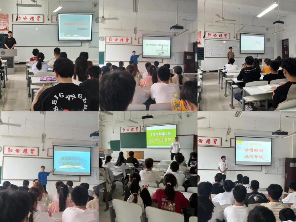 各年级各班级积极开展“遵守课堂纪律,营造优良学风”和“倡导诚信考试,杜绝考试作弊”主题班会活动。辅导员和班委向同学们强调要自觉规范自身言行,严肃上课纪律,合理安排学习时间,学会自主学习,自觉遵守考试纪律,诚信应考,不抱侥幸心理,树立诚信意识。同时,倡议同学们互帮互助,营造良好的班级学习氛围。
