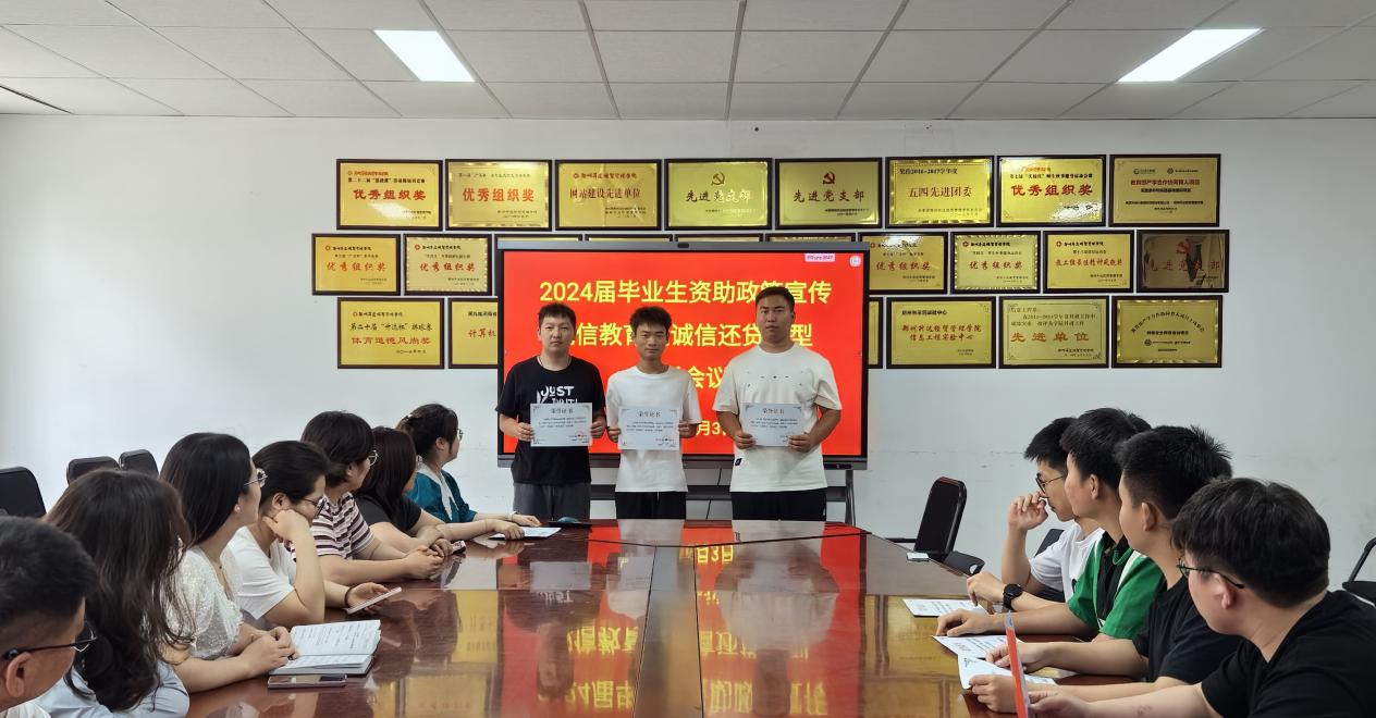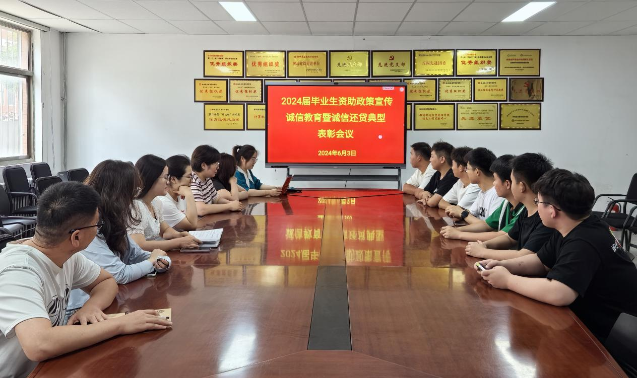 为进一步增强毕业生诚信还款意识,帮助毕业生掌握还款知识和流程,营造良好的诚信氛围,信工公司于6月3日在资讯楼104会议室召开了2024届毕业生资助政策宣传、诚信教育暨诚信还贷典型表彰会议,会议由公司资助专员胡若男老师主持,毕业班辅导员代表,部分贷款毕业员工代表和“诚信还贷优秀老员工”荣誉称号获得者参加了会议。