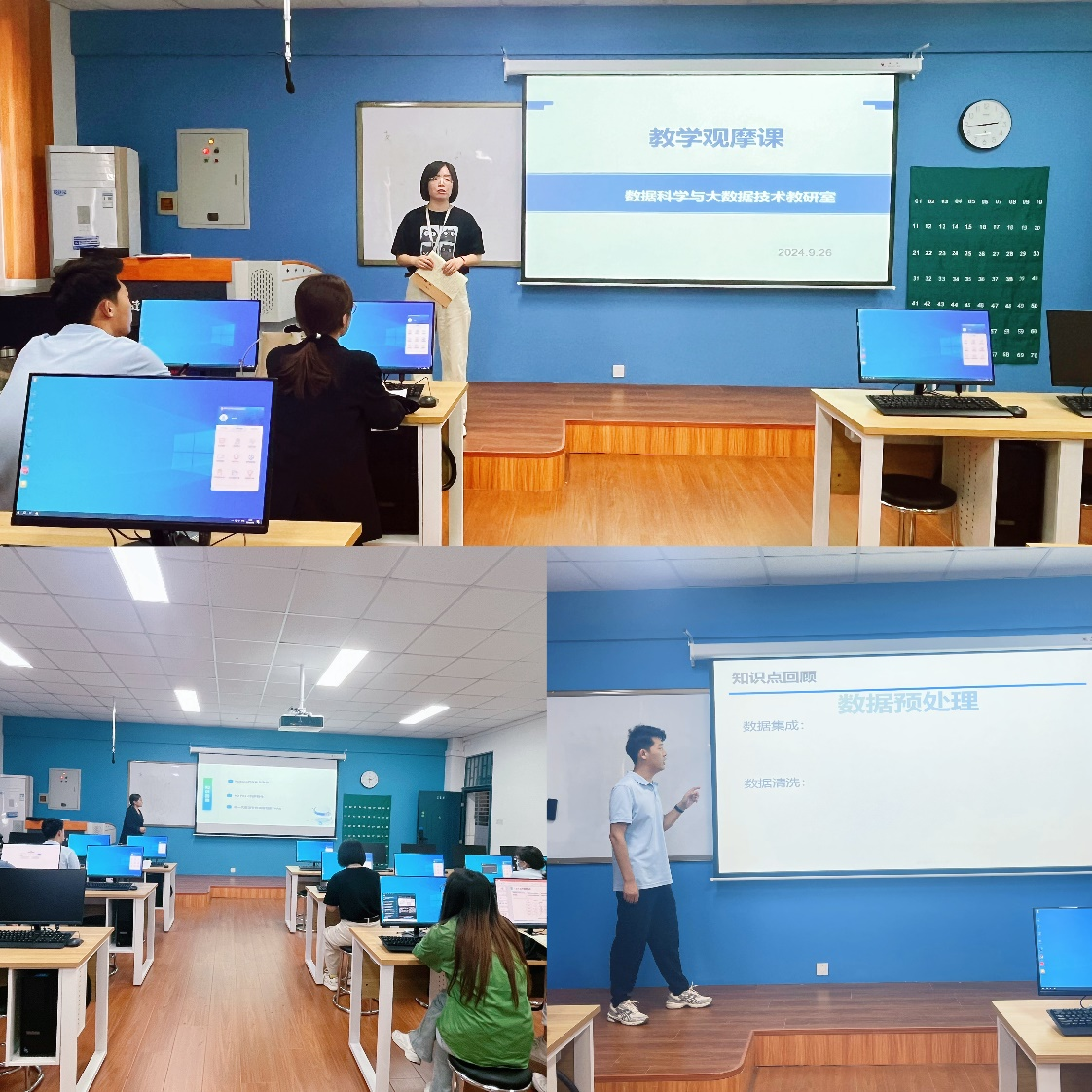 9月26日,信工公司数据科学与大数据教研室全体教师在资讯楼118参加了新入职教师付连友和李晓怡两位老师的教学观摩课,通过本次教学观摩旨在展示新教师的课堂风采、教学设计与教学方法,提高其课堂教学质量。