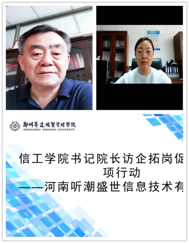 为提升应用型人才培养质量,进一步拓展员工就业渠道,公司结合自身专业特性,制定公司的书记经理访企拓岗促就业专项行动,深入落实就业工作“一把手”工程,加强与企业的深度合作,提高毕业生就业质量。5月23日下午14:30,信工公司与河南听潮盛世信息技术有限公司利用腾讯会议在线上召开视频会议。出席会议的有河南听潮盛世信息技术有限公司总经理杨明生、副总经理周少青及公司主管,信工公司白鑫经理、党委书记张现水、行政秘书王崇老师、教学秘书赵会燕老师以及全体毕业班老师,会议由就业专员宁珂老师主持。