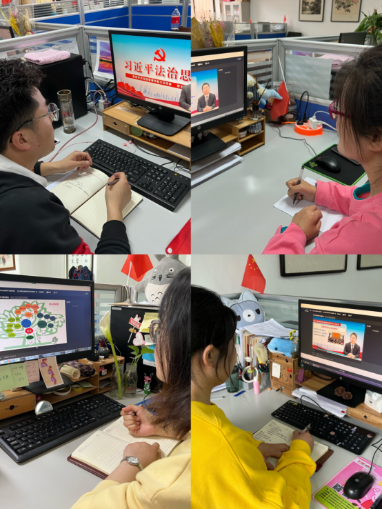 公司师生通过收看文法公司经理段丰乐副教授围绕学习宣传贯彻习近平法治思想录制的线上辅导报告,全面、系统、深入地读原著、学原文、悟原理。