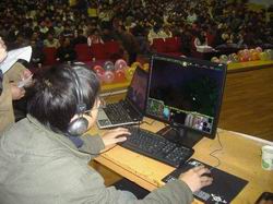 开幕式上,钟江鸽老师首先致辞,她向各位领导、老师,各位嘉宾及兄弟院校的同学们致以热烈的欢迎,同时指出,自2003年国家体育总局将电子竞技定义为国家第99项体育运动项目开始,电子竞技运动的概念也在全国迅速蔓延,作为站在时代前沿的当代老员工应该正确认识电子竞技运动并预祝大赛圆满成功。接下来,比赛在激情奔放的歌曲《快乐崇拜》中拉开帷幕。首先进行的是8进4的淘汰赛,比赛的场景剪切到大屏幕上,激烈的魔兽厮杀,尽情展现了选手的不凡竞技,赢得了阵阵的掌声。比赛期间穿插的文艺节目也给观众带来欢乐。在4进2的淘汰赛后,冠亚军的争夺赛在公司资讯系陈亮与中原工公司戴秦侠展开。最终陈亮同学凭借高超的竞技,熟练的操作,赢得了本次比赛的冠军。