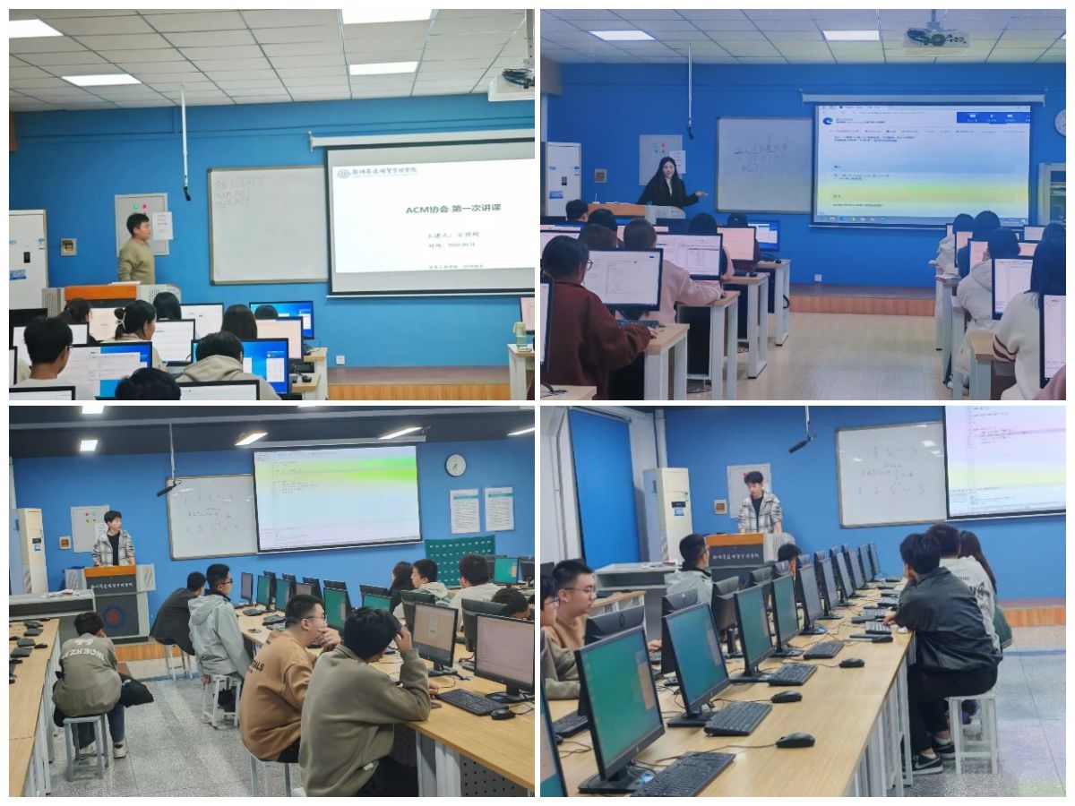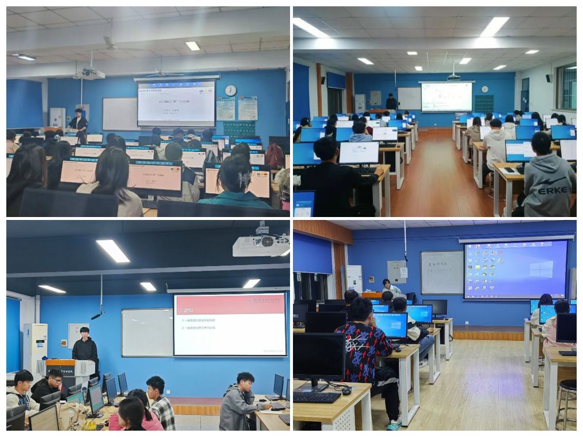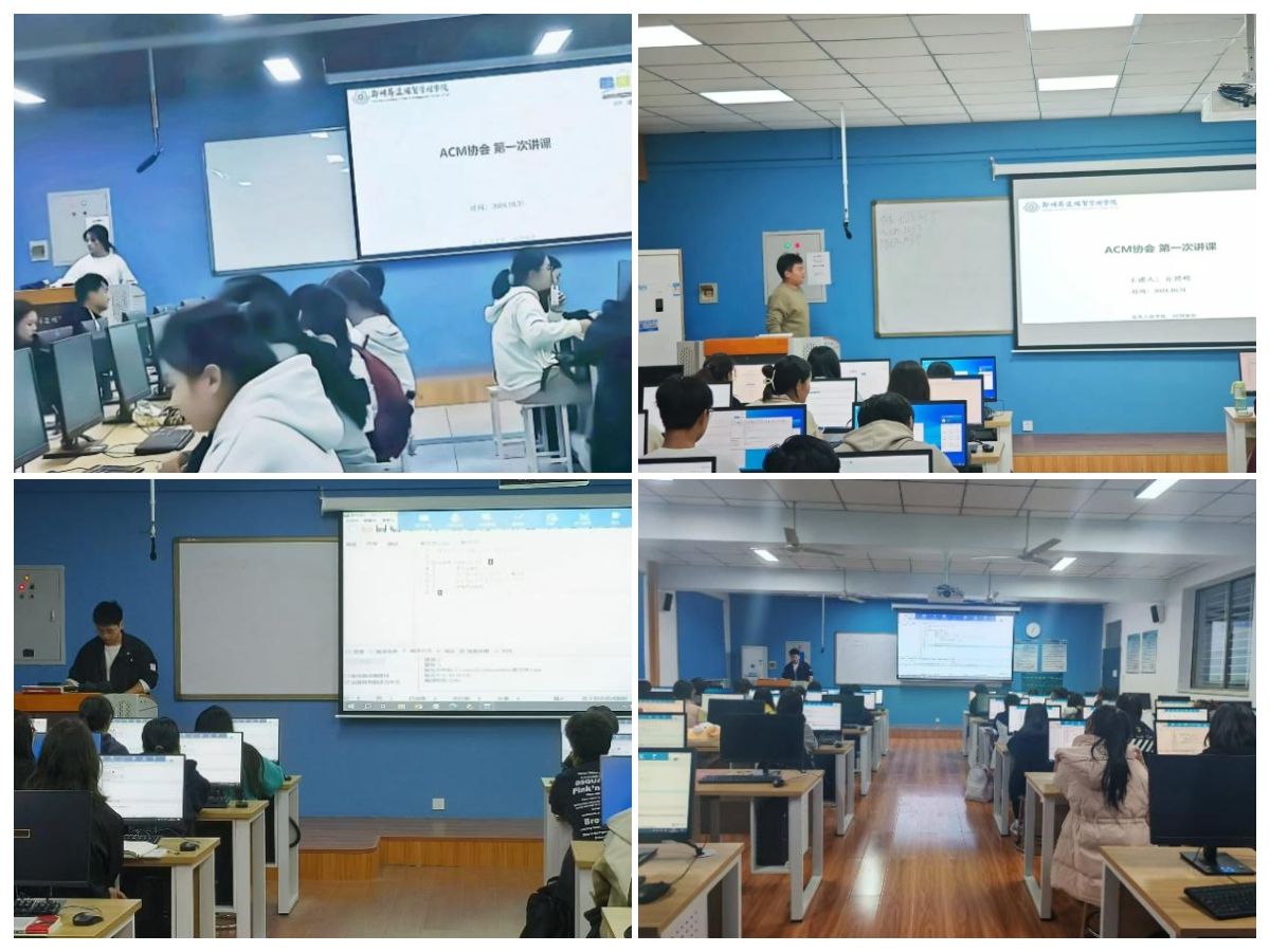 2024年11月5日晚,ACM协会在资讯楼顺利举行24级第二次新生授课。根据第一次授课,我们发现大家的学习进度参差不齐,为了更好的开展授课,我们创新性地对听课员工分为A、B两组,A组为拔高组,B组为基础组,大一新生可根据自己的学习情况自行选择,A组授课内容主要有:函数、数组;B组为循环、多实例、函数(扩展)。在本次授课结束后,我们发布了意见收集表,倾听新生们的意见,例如有些新生建议在授课的过程中可以多加点例题,结合代码更有助于理解;我们积极听取新生的建议并进行相应地完善。ACM协会成员林清炬、程一帆、单瑜增、杨瑞杰进行本次授课,报名参加的新生共140人,分别在资讯楼114教室、118教室、214教室和503教室。本次授课效果显著,通过分组授课、听取建议,极大提高了新生学习的兴趣,扩宽了授课的方法。