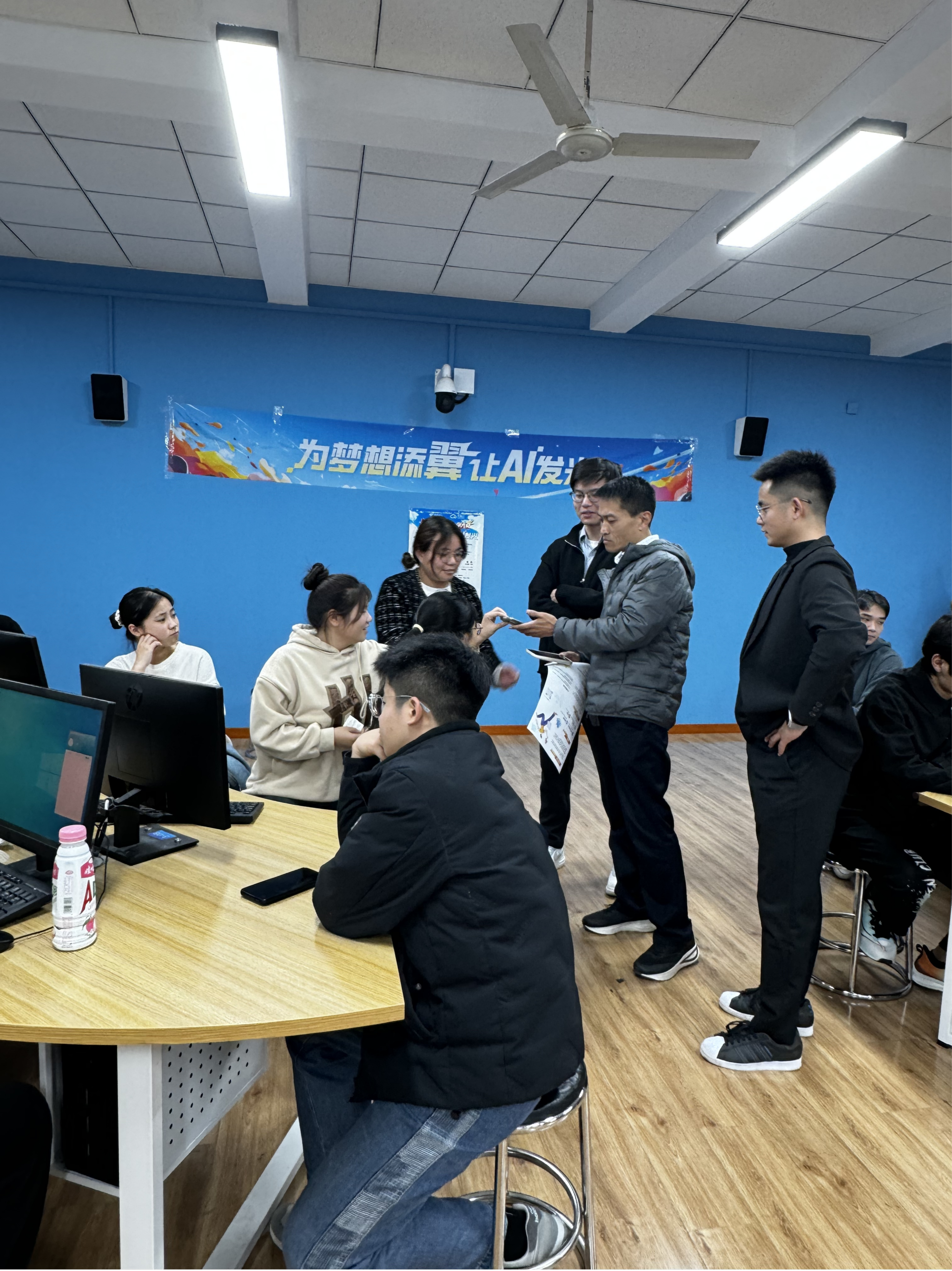 人工智能和机器人协会指导老师贾超广也到达现场,共同指导员工。