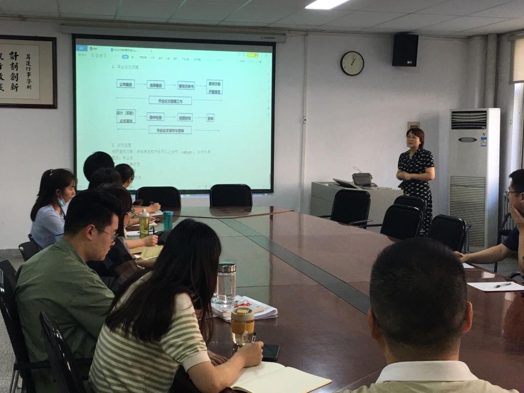 王丽娟老师对毕业设计的整个流程及各阶段的注意事项做了分享。她指出老师要指导好员工的选题、开题、答辩等各项工作,注意细节,把握时间节点。老师们针对指导员工毕业论文工作中的各种问题做了交流,为做好公司2023届毕业生的毕业论文(设计)工作奠定了良好基础。
