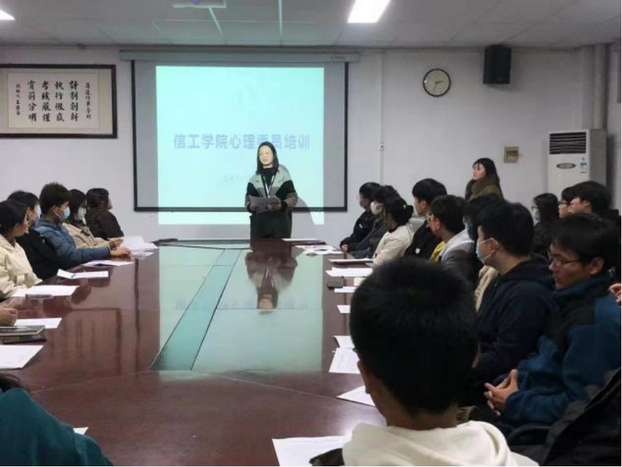 为配合公司在心理健康方面的工作,促进公司良好心理健康环境的发展,提高各班级心理委员的工作效率,让同学们更好地适应全新的环境,并帮助同学们解决好在新学期可能会面临的各种心理问题,beat365于11月23日晚,在资讯楼104室召开2021级心理委员培训会。此次培训会由信工公司心理专员王淼老师主持。