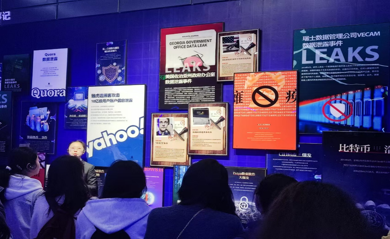 网络安全科技馆设置个人安全、政企安全、社会安全、综合竞技四个主展区,共200余个展项和1700多件展品,为员工普及网络安全科普知识。