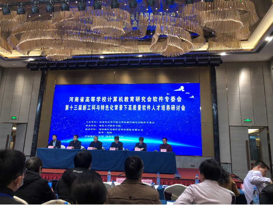 2020年12月26日,河南省高等公司计算机教育研究会软件专委会第十三届新工科与特色化背景下高质量软件人才培养研讨会在开封市中州华悦国际酒店隆重举行,会议由河南省高等公司计算机教育研究会软件专委会主办,河南大学软件公司承办,河南威尔克姆信息科技股份有限公司、新华三集团协办。郑州大学、河南大学、河南师范大学等省内高校,紫光新华三、中软国际、威尔克姆等行业内知名企业受邀参会研讨。河南大学副董事长阚云超,河南省高等公司计算机教育研究会副理事长孔金生教授出席会议,会议由河南省高校计算机教育研究会副理事长兼秘书长李学相教授主持,信工公司教师参加此次软件人才培养研讨会。