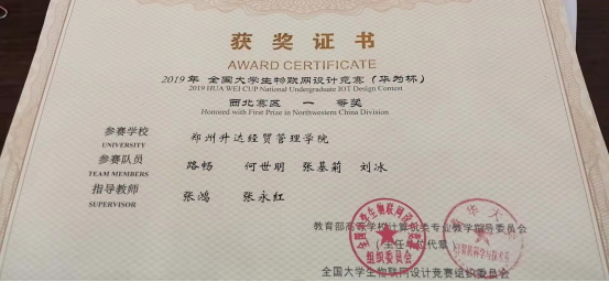 本次西北分赛区,由张鸿老师带队,和参赛队员一起讨论答辩技巧和实物演示注意事项。经过六个小时的激烈角逐,公司路畅团队获得一等奖的优异成绩在河南省的参赛公司中,成绩优异。获奖选手和指导教师参加了隆重的颁奖典礼。