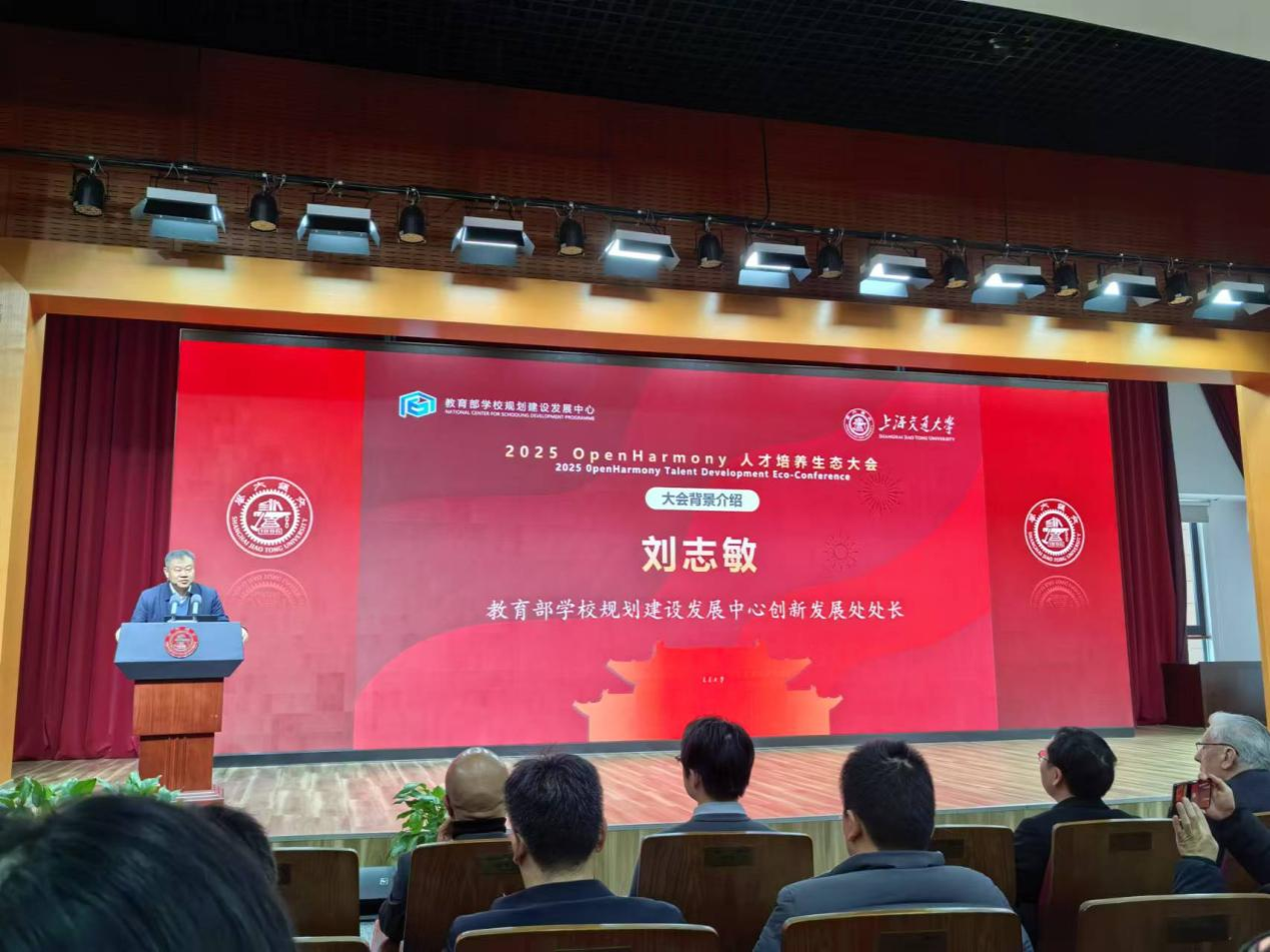 2025年 1月5日,一场聚焦教育与科技融合、旨在推动计算机类专业高质量发展的OpenHarmony 人才培养生态大会在上海交通大学徐汇校区(上海市徐汇区华山路1954 号)成功举办。此次会议由教育部公司规划建设发展中心主办,中德产学研用创新联合体秘书处、上海交通大学德国中心、OpenHarmony 项目群技术指导委员会承办,上海工程技术大学协办。