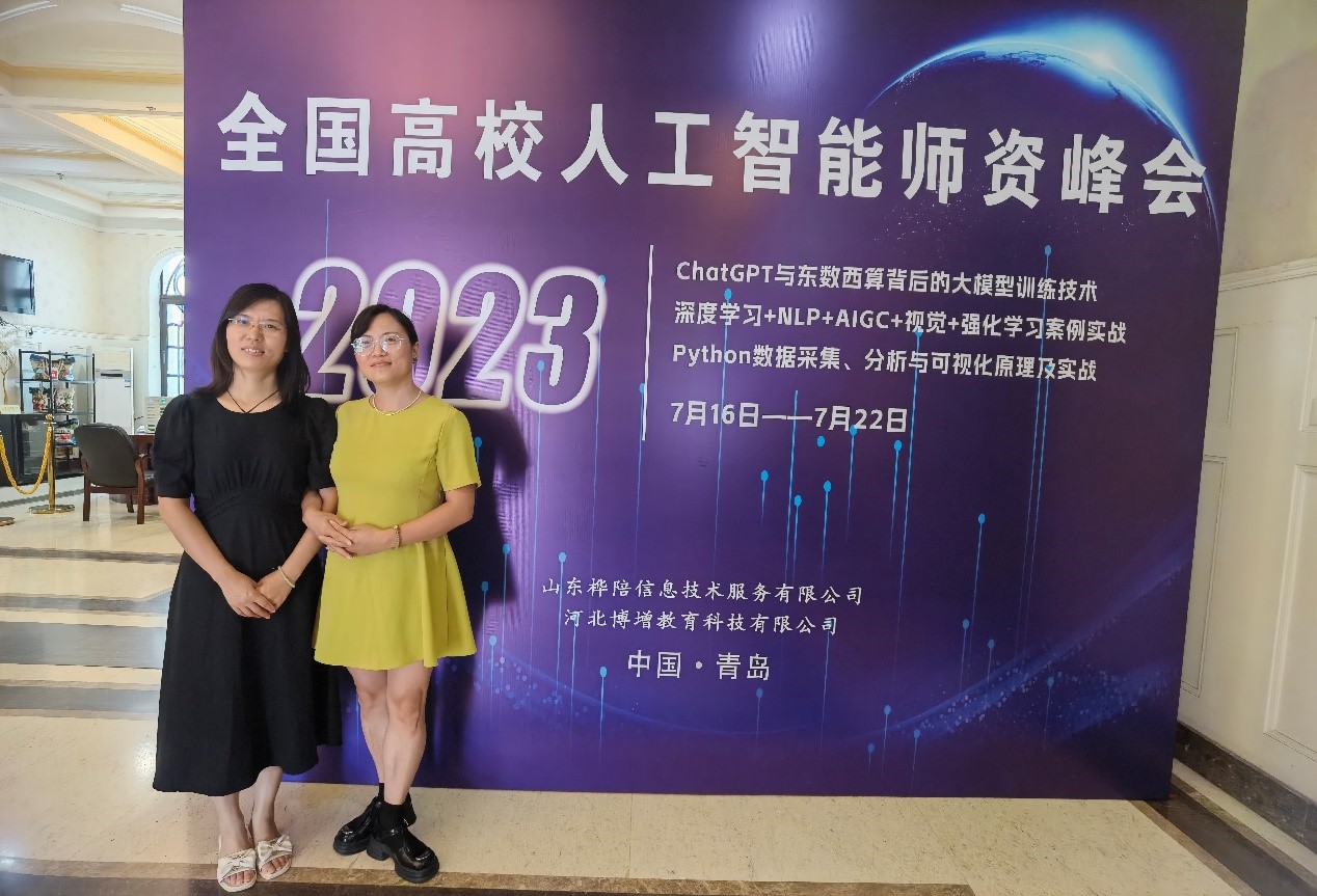 近年来,人工智能加速发展,人工智能作为新一轮产业变革的核心驱动力,正在释放历次科技革命和产业变革的巨大能量。同时国内高校人工智能相关专业建设如火如荼,其中Python数据分析可视化、深度学习、知识图谱、机器视觉、智能系统、区块链等相关技术已成为越来越多专业领域人才的必备能力和教学改革的新热点。山东桦陪信息技术服务有限公司基于对教育的深刻理解和实践,深耕产业应用技术到高校教学转换,于2023年7月17日至7月22日在青岛举办全国高校团队培训峰会,此峰会的举办针对高校现状,解决专业建设中团队不足,教师落地动手实战应用能力欠缺,教学过程中产业实战案例项目缺失等一系列教学和科研问题。信工公司派骨干教师杨东芳老师和赵丽红老师参加了本次培训。
