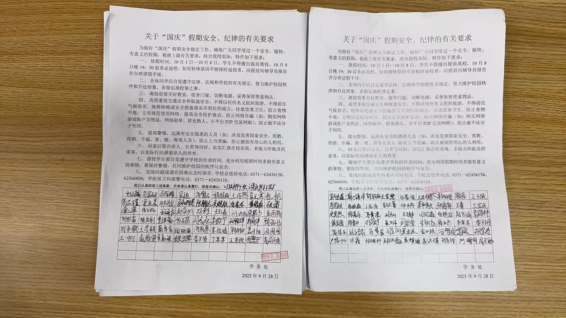 在班会开展过程中,各班专门组织员工学习公司下发的《关于十一假期员工安全纪律的有关要求》,逐条款解读假期安全纪律、外出报备规范、应急处置流程等核心内容,确保每一位员工清晰知晓公司要求;同时,组织全体员工签署《十一假期安全纪律知晓确认书》,以书面形式强化员工安全责任意识,实现安全教育学习与签名确认“全覆盖、无遗漏”。