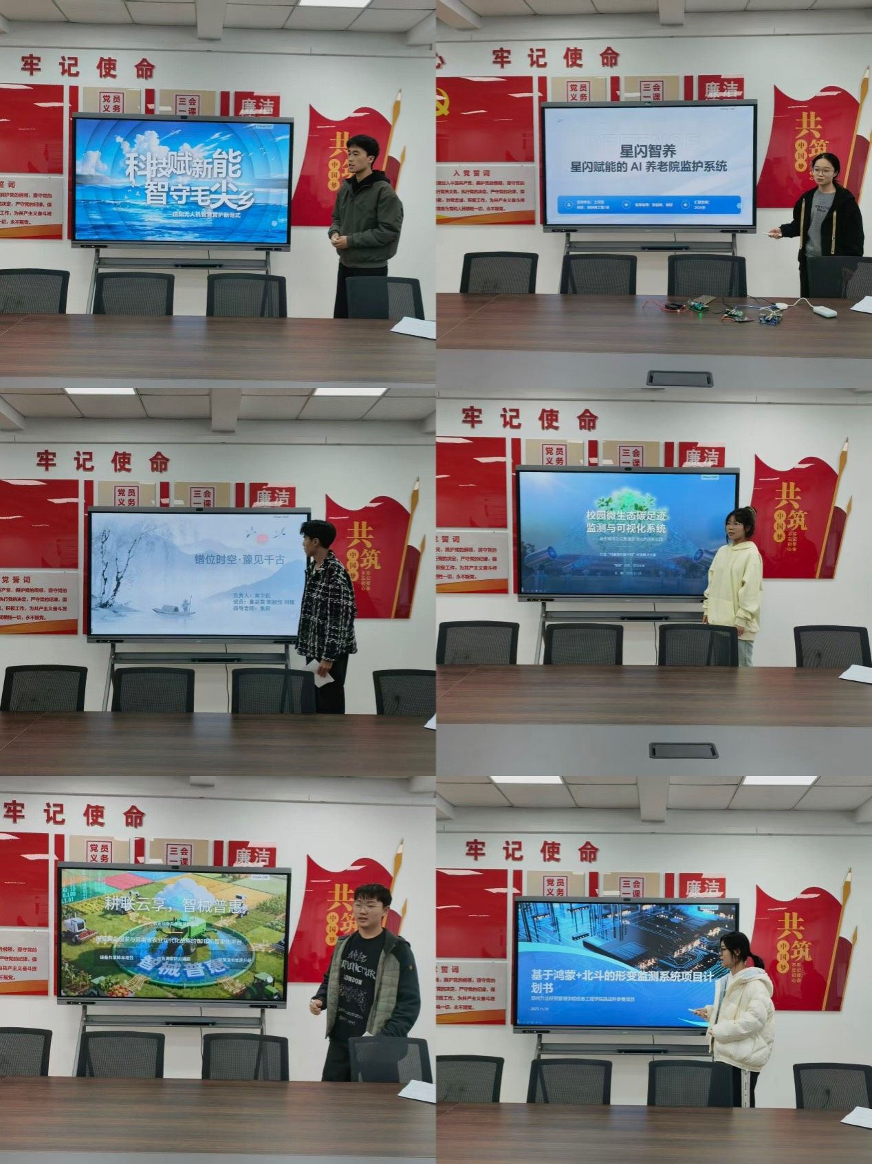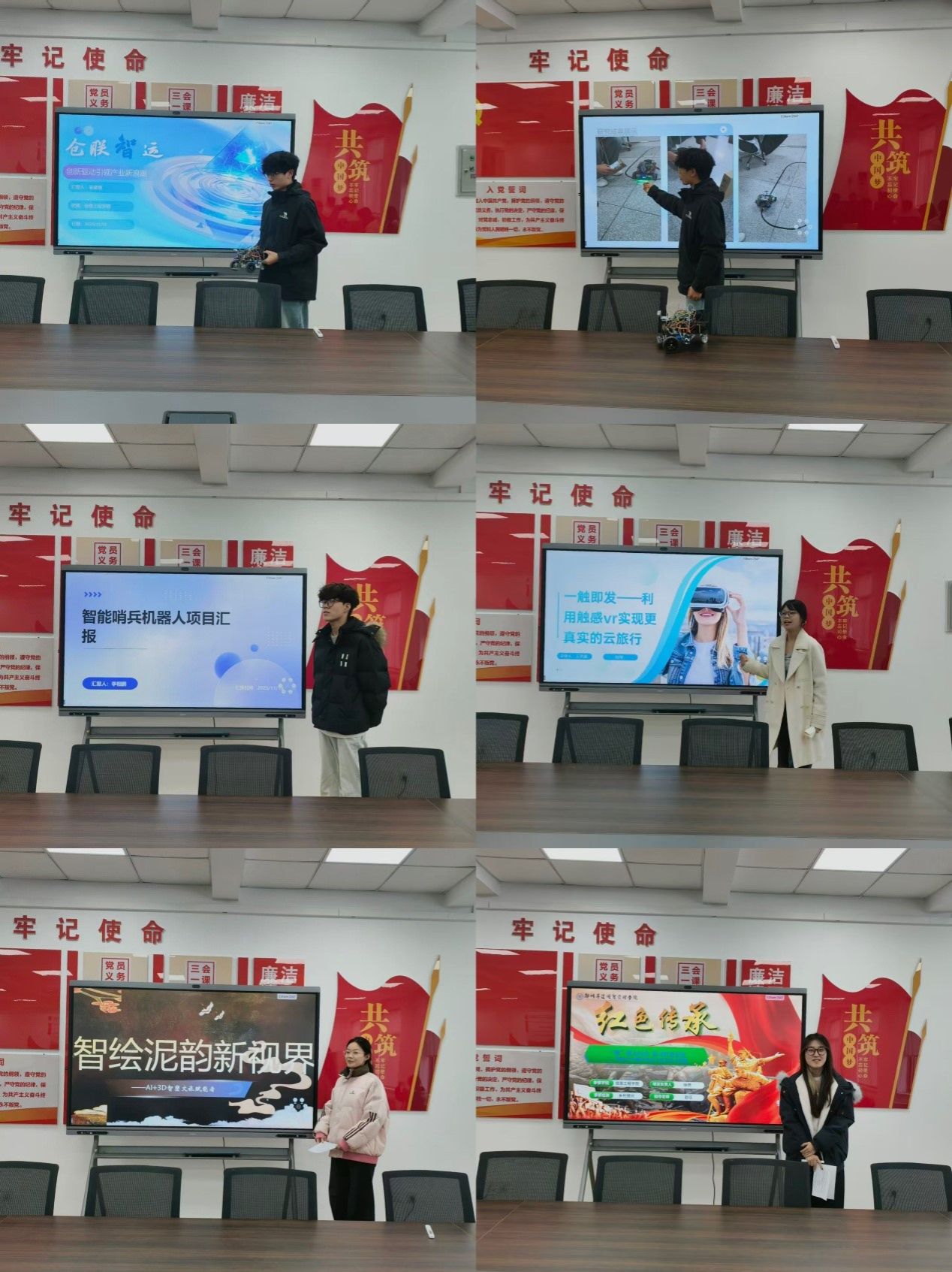 比赛环节中,37组选手依次展示项目成果,覆盖智慧农业、非遗数字化、智能健康等多个领域,现场不仅有逻辑清晰的PPT演示,更有智能机器人等实物作品的实操展示,充分展现了信工学子的创新思维与实践能力。评委团围绕项目的创新性、可行性与社会价值展开专业点评:王天顺教授建议团队强化市场调研数据支撑,乔木教授强调技术落地的成本控制,袁奉亚副书记则鼓励选手们突出项目的差异化竞争优势。