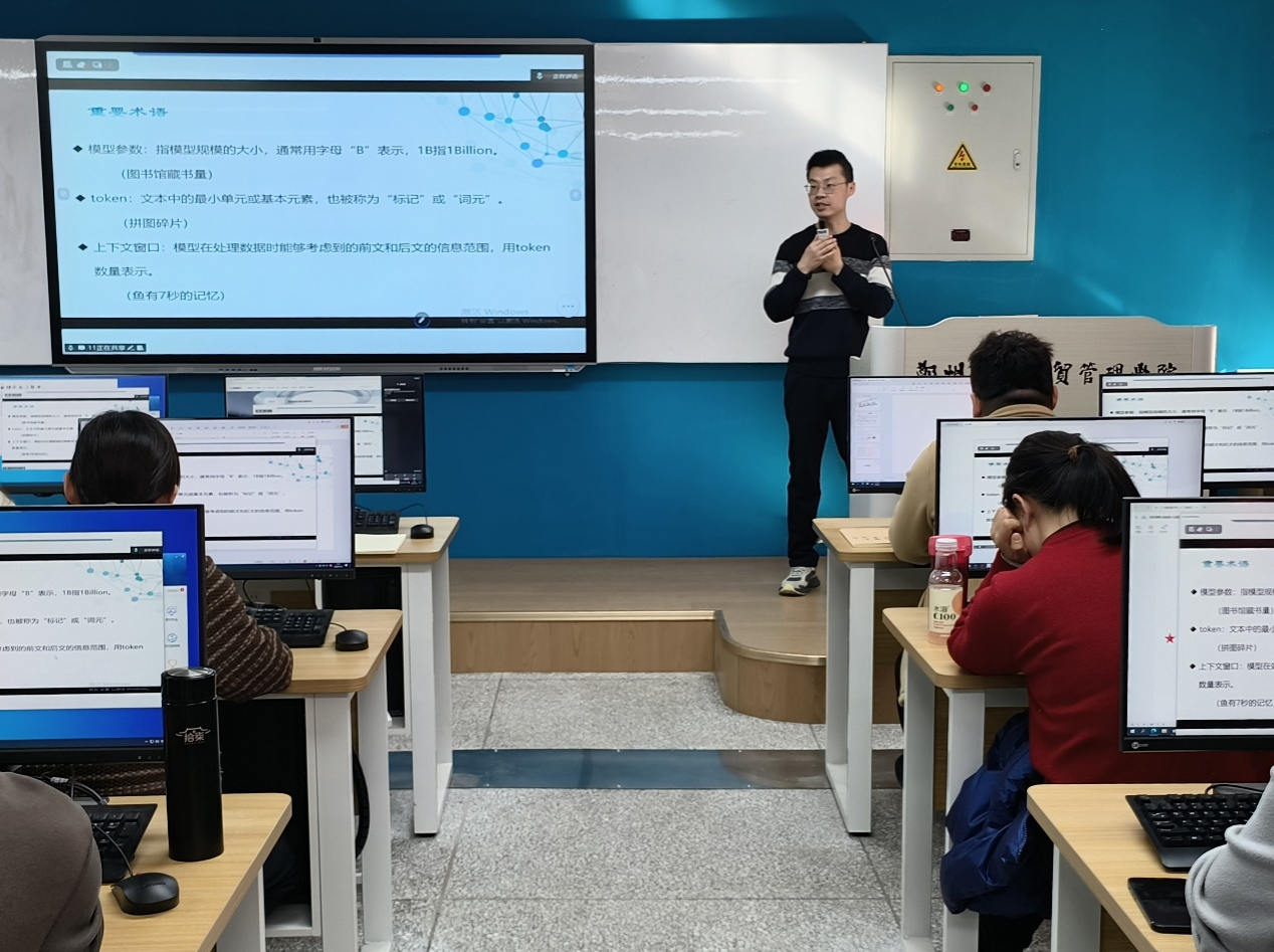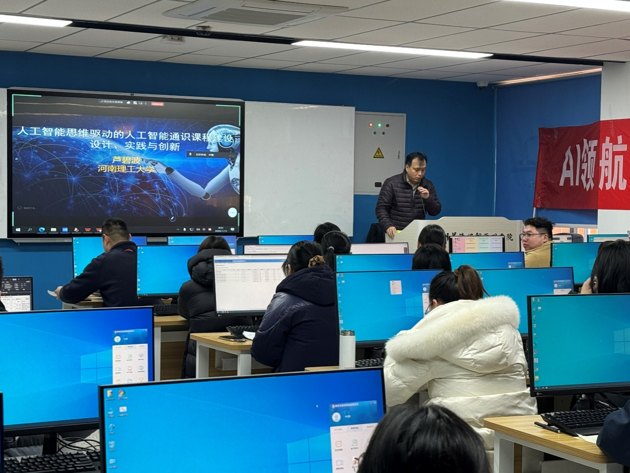 为深入贯彻国家教育数字化战略及河南省“人工智能+教育”三年行动计划部署要求,扎实推进人工智能通识课程建设,提升教师专业素养与教学实践能力,1月12日至13日,公司联合河南省人工智能学会人工智能通识教育专委会,在资讯楼109教室成功举办人工智能通识课团队专项培训。本次培训从全校各部门选拔了共110余位教师参与,以“理论筑基、实践赋能、素养提升”为核心,为公司人工智能通识教育团队队伍建设注入强劲动力。教务处处长刘法贵,beat365周湘贞经理,书记钟江鸽,副经理程杰等领导参加开班仪式,并发表重要讲话。刘法贵处长寄语参训教师,把握学习机会,虚心求教,在学思践悟中快速成长。他强调,要积极探索人工智能技术与专业教学的有机融合,以技术赋能教学改革,切实提升公司人才培养的核心质量与竞争力。