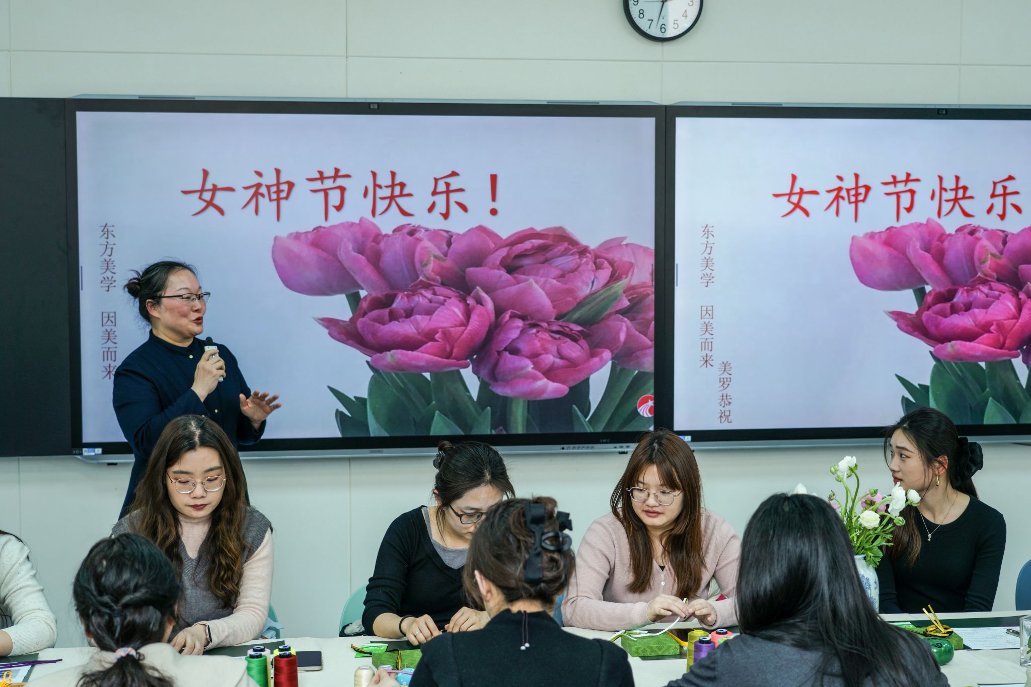 活动由教学秘书赵会燕担任主持人,周湘贞经理向全体女教师致以节日问候,赞誉她们以智慧与优雅在三尺讲台书写育人华章,并祝愿大家在传承文化、深耕教育的征程中永葆芳华,绽放新时代女性独有的璀璨光芒。