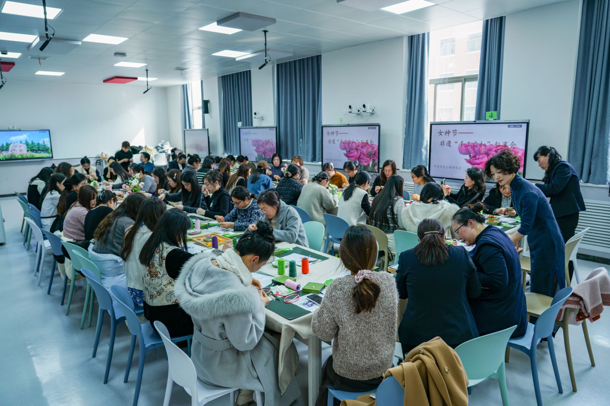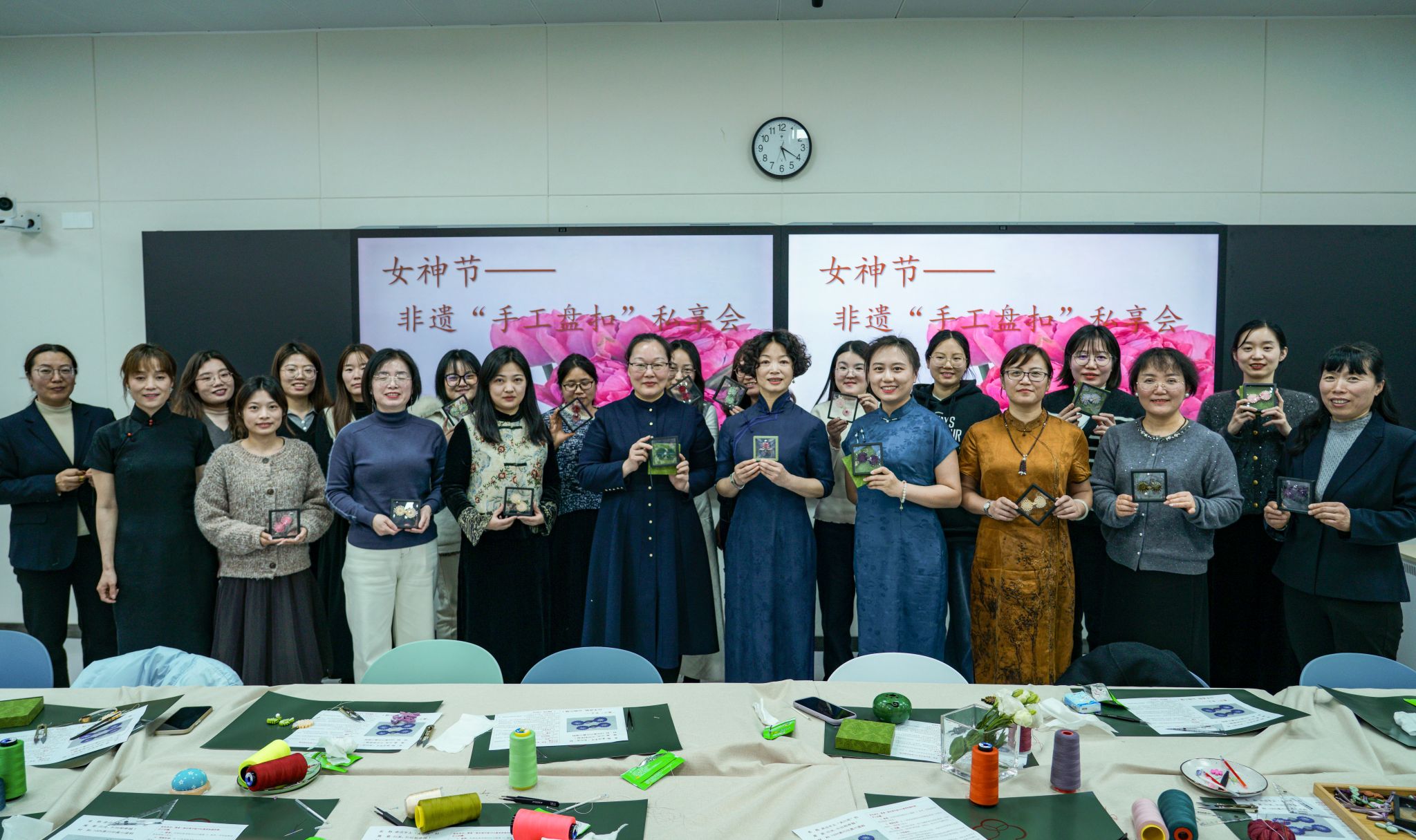 为迎接第115个国际劳动妇女节,弘扬中华优秀传统文化,3月6日下午,信工公司在道镕楼102智慧教室成功举办“她力量——非遗手工旗袍文化分享活动”。五十余位女教师身着典雅服饰,在传统技艺中感悟匠心传承,在文化浸润中凝聚新时代女性力量。