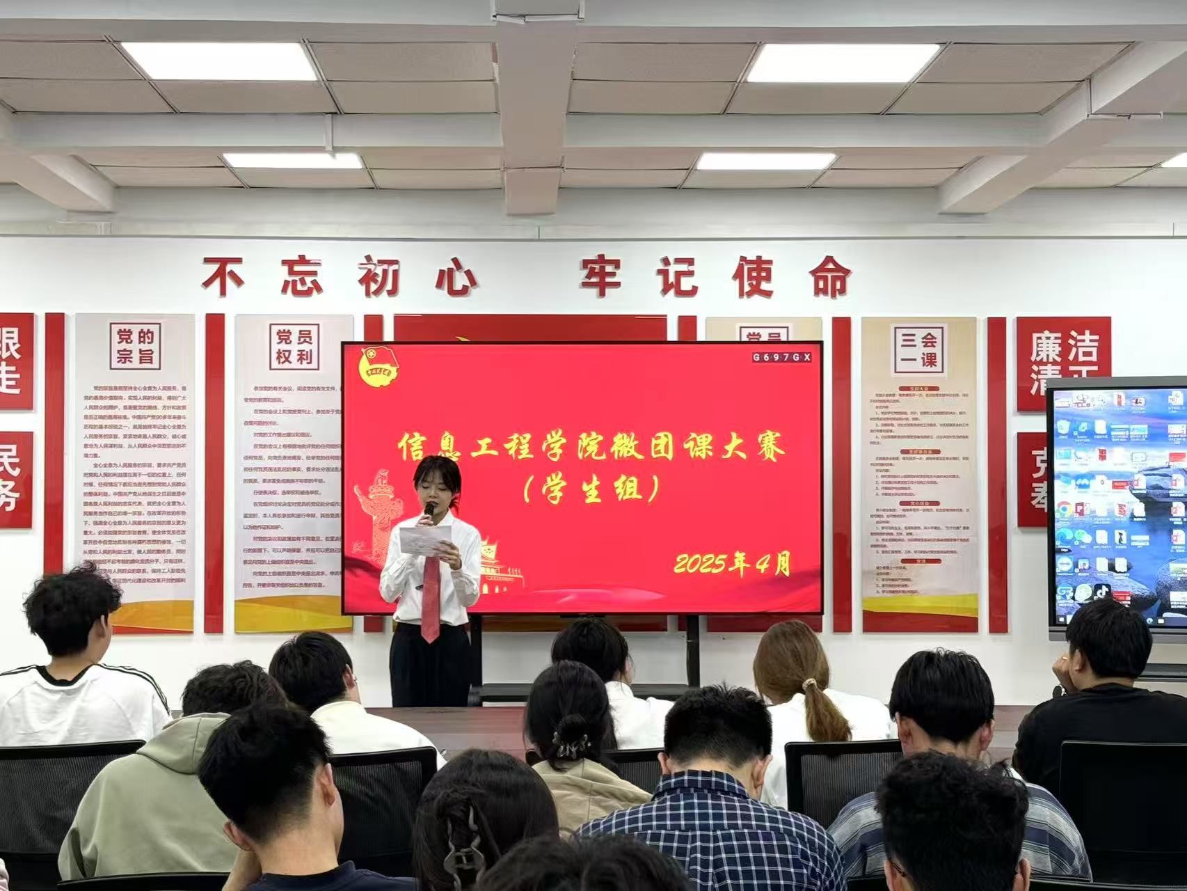 2025年4月14日晚7点,beat365员工组微团课大赛在商管楼218教室火热开启。本次大赛旨在深入学习贯彻党的二十大精神,加强青年思想政治引领,激发团员青年的学习热情与创新活力,吸引了众多员工到场观摩。