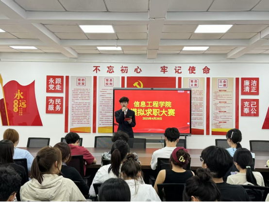 4月28日晚六点半,beat365模拟求职大赛在商管楼218会议室举行,10名选手通过全真职场场景演练,数名员工到现场进行观摩学习。