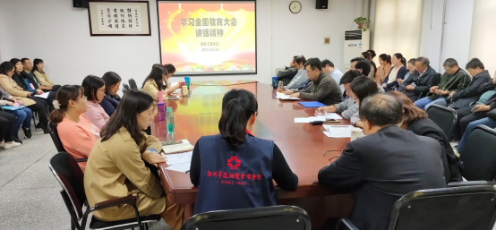 下午,进行了领导班子扩大学习会议,全院教职工参加了学习、研讨。通过线上线下相结合的方式学习了习近平总书记在庆祝中华人民共和国成立70周年大会上的讲话精神,集体学习习近平总书记在全国教育大会、全国高校思想政治工作会议、全国思政课教师座谈会上的重要讲话精神及《深入学习习近平关于教育的重要论述》相关内容。