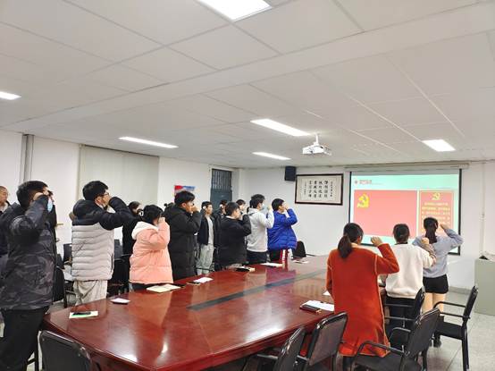 会议严格按照党组织接收预备党员和正式党员的程序进行。会议最后,支部党员马书冕同志带领全体党员宣读了入党誓词,支部书记杜自平同志对会议做出总结:首先对3名正式党员和13名预备党员表示祝贺;接着对与会党员、预备党员等提出要求,要求党员同志们进一步加强理论知识的学习,提高政治觉悟,始终保持正确的政治方向、政治原则和政治底色,真正在思想上入党,切实发挥好党员的模范带头作用,争做时代优秀党员。