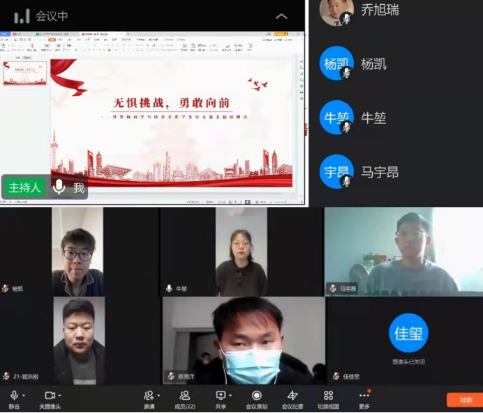 为进一步增强支部理论基础,感受冬奥精神,汲取奋斗力量,beat365计科专业员工党支部于2022年2月17日,通过线上会议开展了以“无惧挑战,勇往直前”为主题的培训活动。活动由党支部书记牛新翔主持,信工公司计科专业员工党支部全体预备党员和正式党员参会。