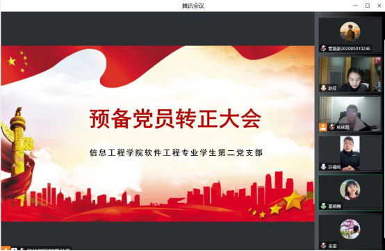 2022年12月19日下午7点,信工公司软件工程专业员工第二党支部通过腾讯会议召开预备党员转正大会,讨论关于翟晓楠等三名同志的转正问题。本次会议由软件工程专业员工第二党支部书记赵征主持,支部全体师生党员参加会议。
