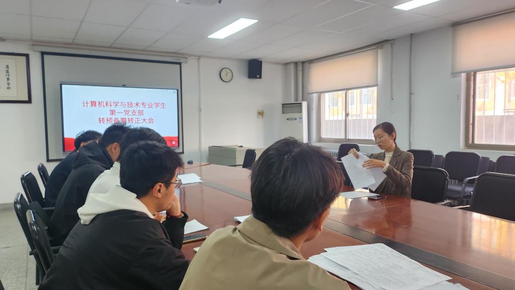 11月22日中午12点30分,信工公司计算机科学与技术专业员工第一党支部在资讯楼104会议室召开预备党员转正大会。会议由党支部书记马森琦主持,参会人员为组织委员周媛媛同志及其他正式党员、预备党员。