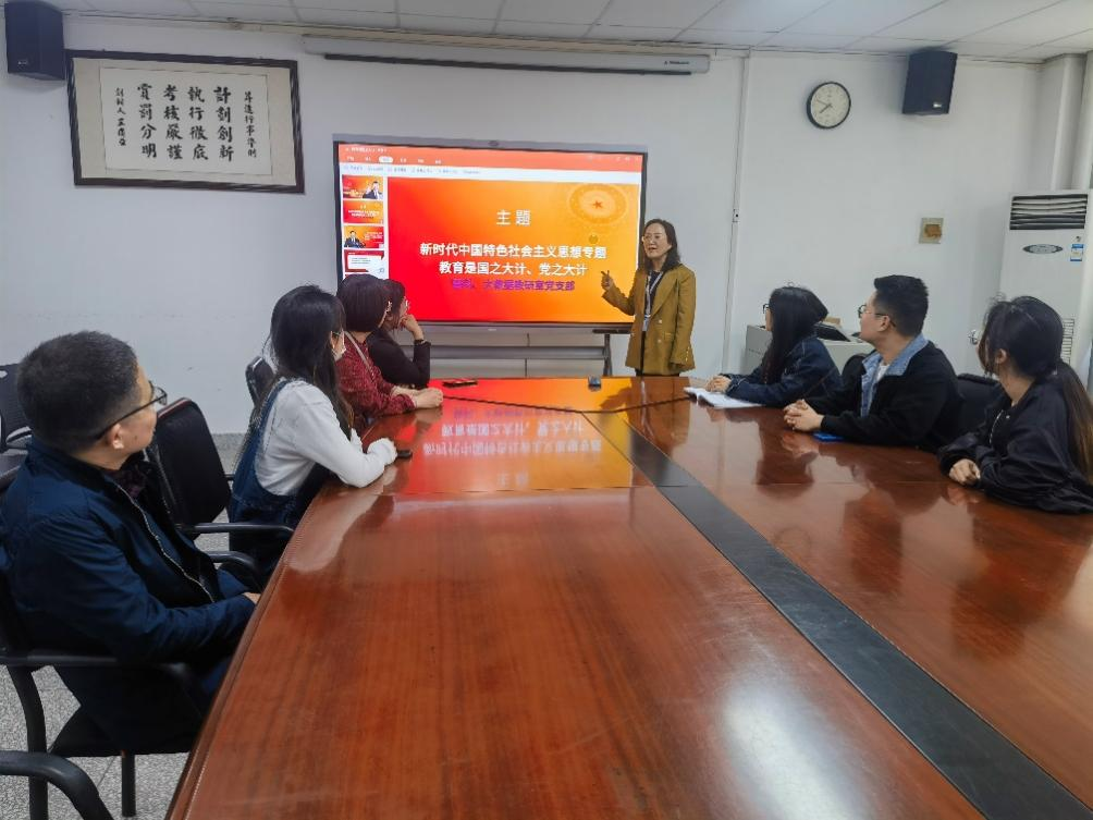 为贯彻落实上级党委和beat365党委主题教育安排部署,根据beat365党委主题教育工作要求,5月8日下午1点,智科大数据教研室党支部书记吕丽平在资讯楼104会议室讲授以“教育是国之大计、党之大计”为题的主题教育专题党课。党支部全体党员,入党积极分子参加党课学习。