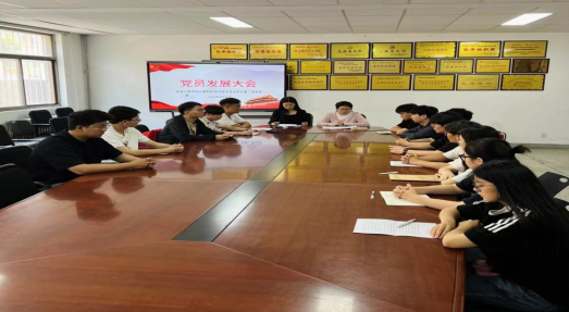 会议伊始,柳晨曦同志介绍本次大会的会议议程并宣读本次发展为预备党员的名单。张田格、李紫怡等8位发展对象分别向支部同志汇报自己对党的认识、入党动机、本人履历、家庭和主要社会关系等情况。随后由党支部李金希同志和柳晨曦同志分别介绍了8位预备党员的入党情况,支部各正式党员无记名投票,一致同意接受张田格等8位同志成为中共预备党员。