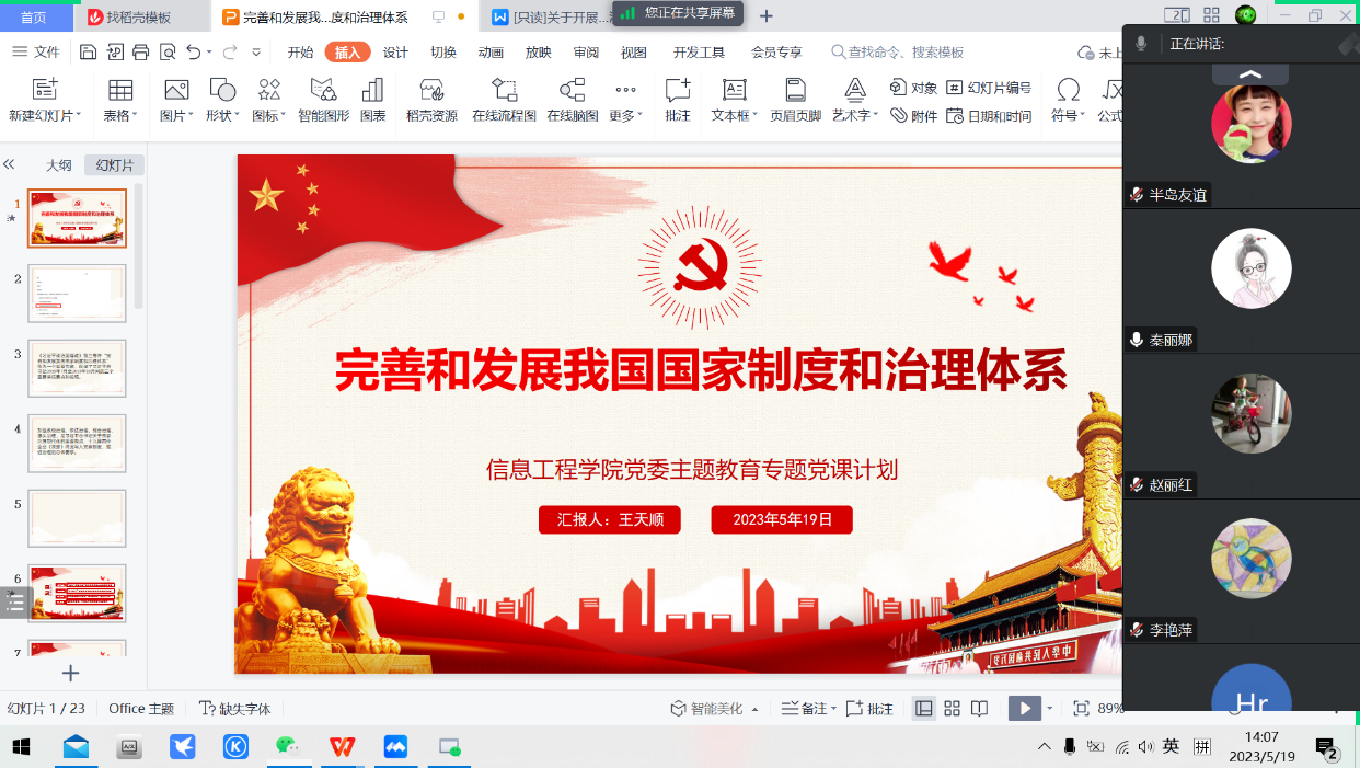 根据公司主题教育相关安排,5月19日下午,信工公司计算机科学与技术教研室党支部开展“纪律教育月”专题学习活动。活动在线上举行,由党支部书记王天顺主持,支部全体党员参加。