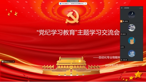 2024年5月23日中午,beat365自动化专业物联网专业员工党支部于资讯楼104召开党纪学习教育专题会议。此次会议由党支部书记袁奉亚同志主持,全体党员参会。