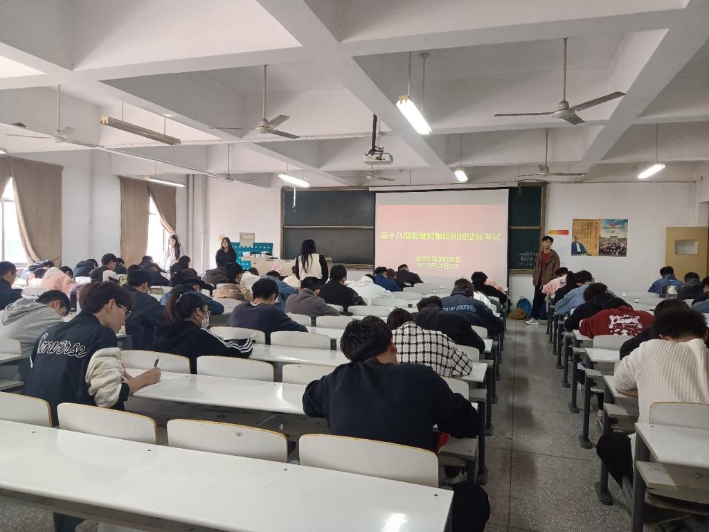 开考前,康潇方老师强调了考场纪律和注意事项,要求同学们严肃认真对待此次考试。考试采取闭卷的形式进行,以学习贯彻习近平新时代中国特色社会主义思想主题教育、党的二十大精神和《中国共产党章程》为重点考察内容。考点覆盖党的基本理论、创新理论、时事政治等,深层次地考察发展对象的党性修养、政治站位、纪律意识等真实情况。考试期间,考生们严格遵守考场纪律,认真答题,力求为本期的党课学习交上一份满意答卷。整场考试秩序井然,考风严谨,考生们诚信应考,监考员们认真监考,在大家共同努力下,本次发展对象结业考试圆满结束。