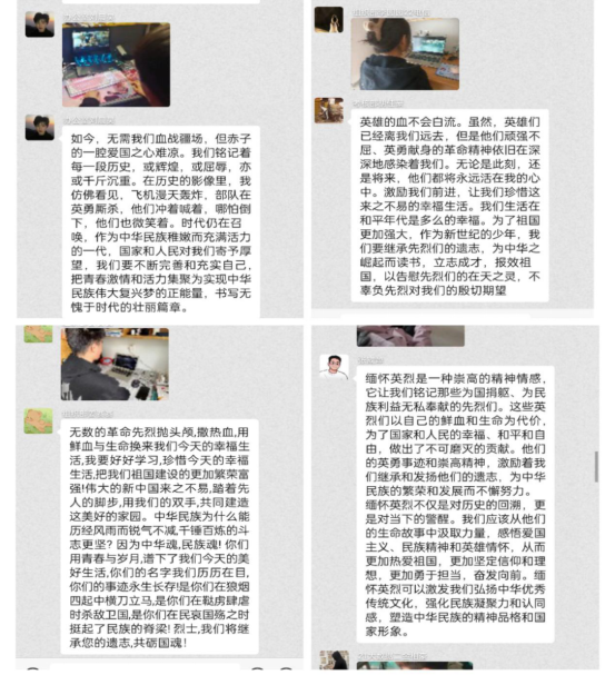 “我们今天的和平幸福生活是千千万万革命先辈们抛头颅洒热血换来的,我们要缅怀过去,铭记历史,更要秉承先志……”观影结束后,同学们纷纷畅谈自身观影体会,表达着对英烈们的崇敬,进一步激发了大家的爱国热忱,提升了民族自信心和自豪感。