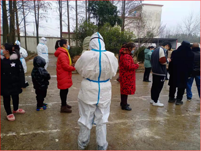 (上图是村里在进行核酸检测,李丹丹同学在帮助进行个人二维码的采集)