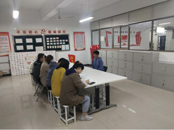 11月3日晚18:30在资讯楼党建办公室,苗淑娟老师带领各部门负责人对参加党建招新的同学进行了面试,内容关于对党建工作的未来展望以及自身的优势、对党建各部门工作的认识,并且对每位同学的面试情况做出了详细记录。