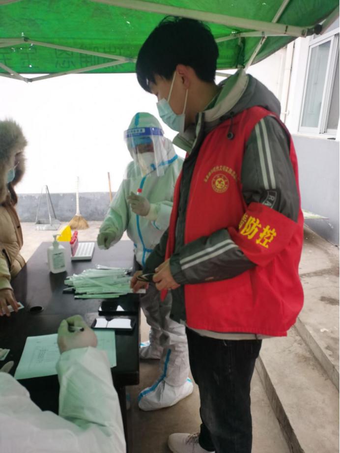王志杰同学每天的工作就是需要和村干部一起到村子主要路口进行值班。主要工作内容是对过往行人及车辆进行检查,让他们配合登记自身信息,检查他们的健康码,行程卡,还有去向,对于不合理的去向,直接劝返。以及向来往行人介绍疫情的严峻性,做好防护,做到非必要不出门。志愿者的加入使工作效率极大地提高,做好村民的安全保障工作。