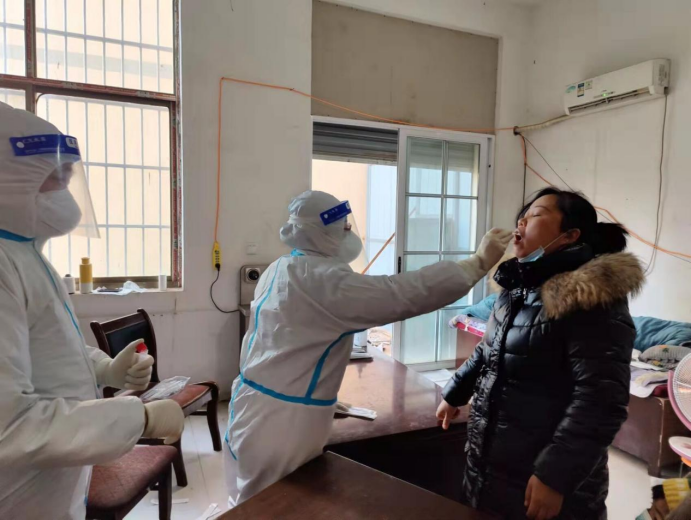(冯沐荣同学在帮忙采集核酸)