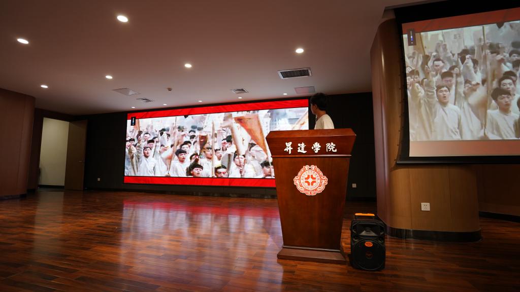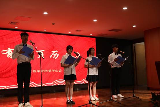 信工公司团委员工会为我们带来了诗朗诵《有一页历史》,朗读者们深情朗诵,同学们共同聆听,为祖国母亲献上诚挚的祝福。