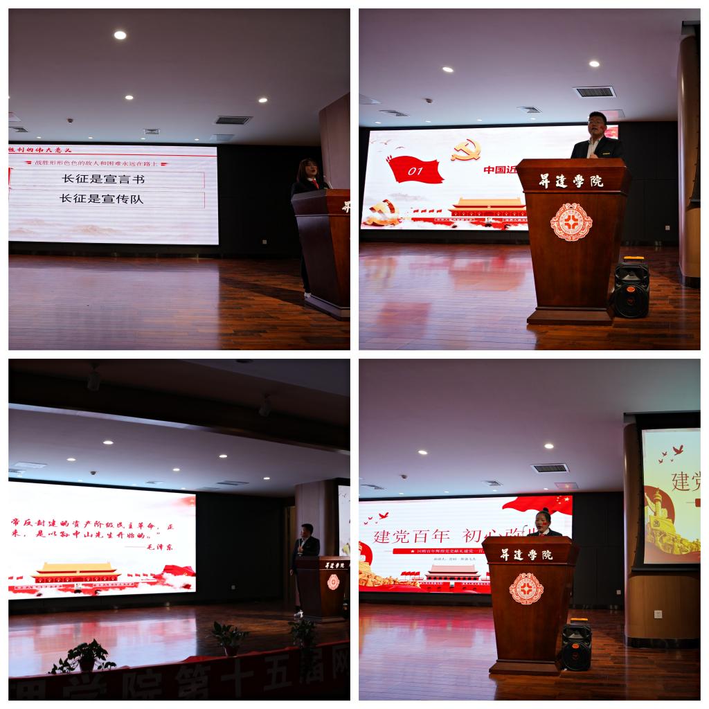 接着以“青春向党,奋斗强国”为主题的ppt演讲比赛激烈进行,参加决赛的选手紧紧围绕中国共产党成立一百周年这条主线,歌颂党的光辉历程和伟大成就,抒发对党的无限深情与满腔热爱,让大家看到了当代新青年对祖国无与伦比的骄傲与自豪感。