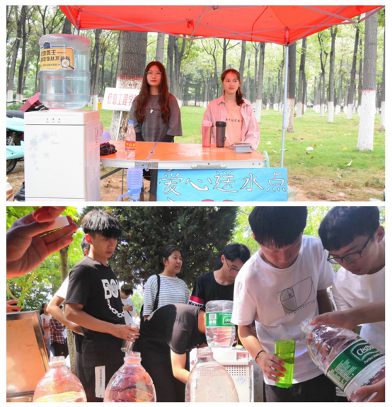 为表达信工公司对信工学子的关爱之情,帮助新生尽快适应新环境,提高新生军训质量。由信工公司生活部主办的“爱心送水”活动在后山篮球场持续开展。