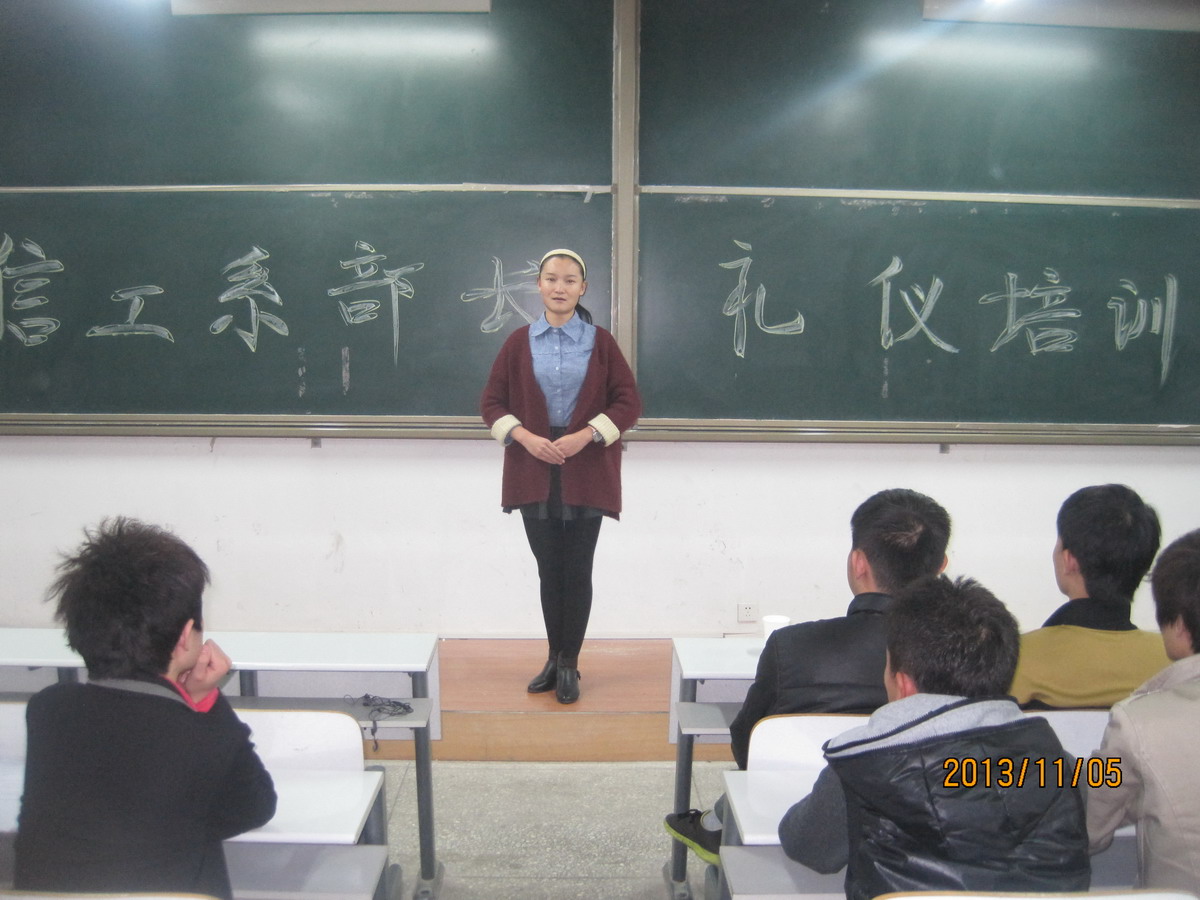 11月5日下午5:30,信工系团委员工会进行了一场别开生面的礼仪培训大会。此次活动特邀请了院女生部部长潘卫莹礼、仪队队长闫梦奇和系副主席汤四海为大家讲解实用礼仪。系全体团委干部参加了培训。