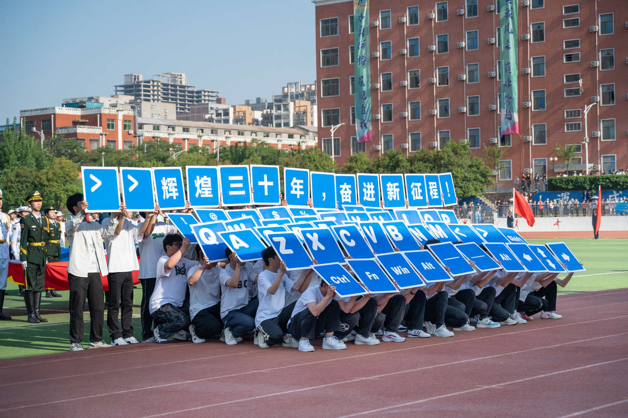 迎着和煦的日光,伴着激昂的歌乐,信工公司仪仗队喊着嘹亮的口号踏向舞台。极具特色的键盘方阵给人独一无二的视觉震撼,展现出信工学子勇于创新的开拓精神。