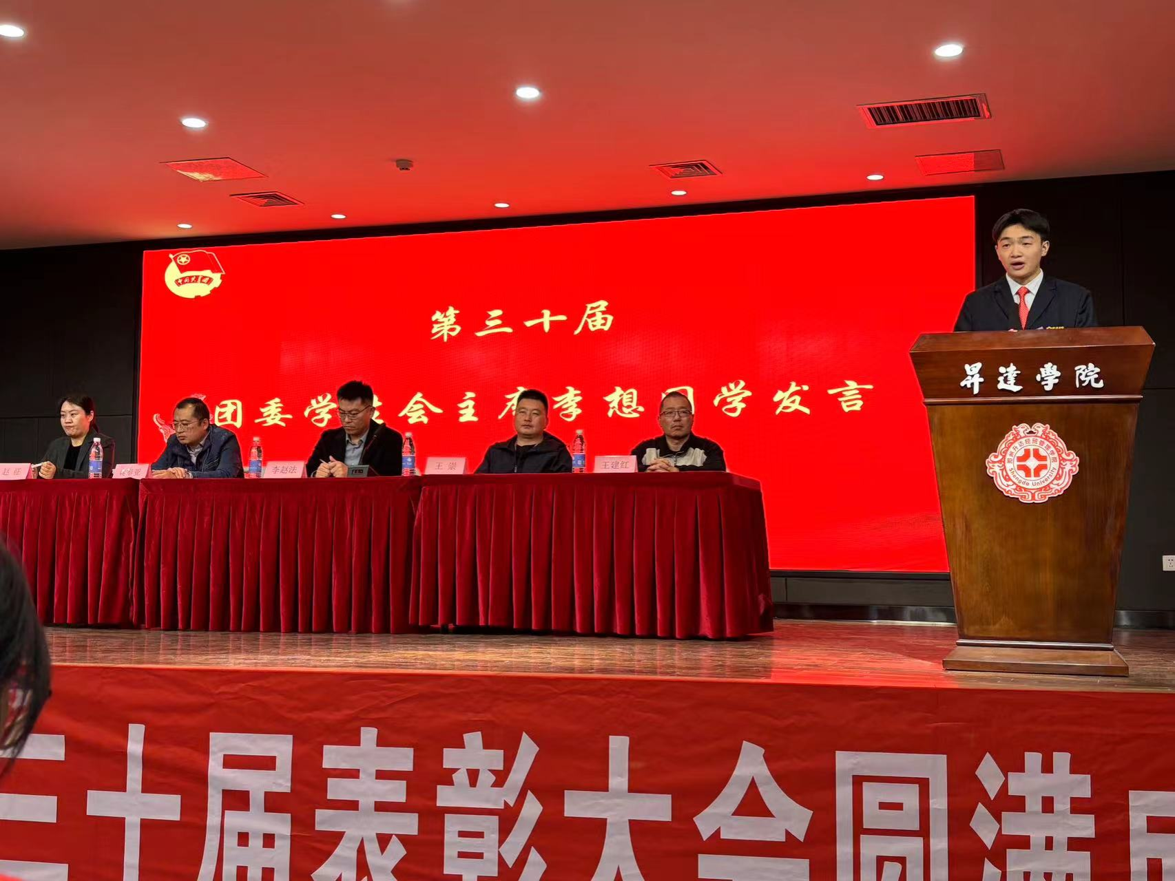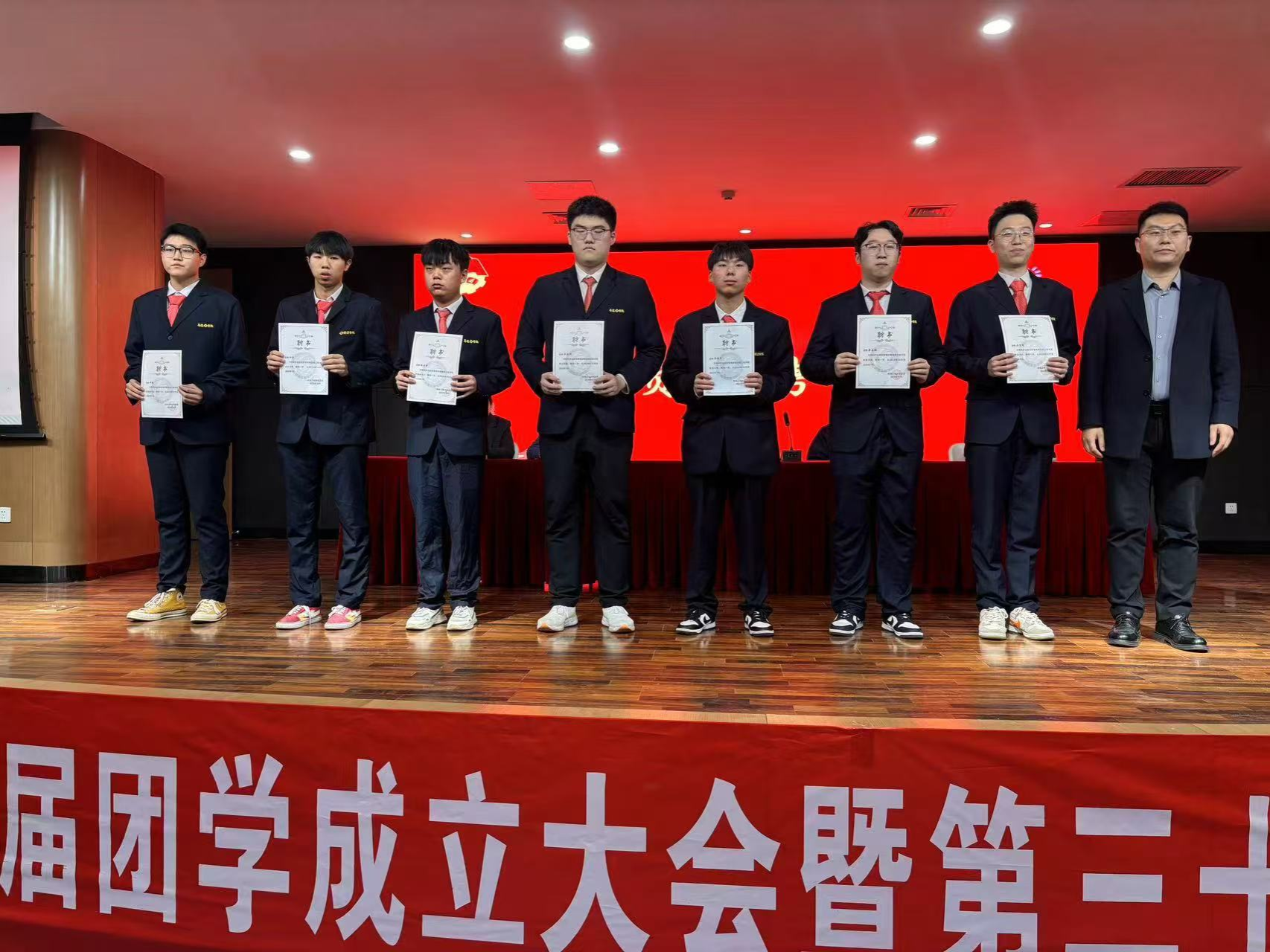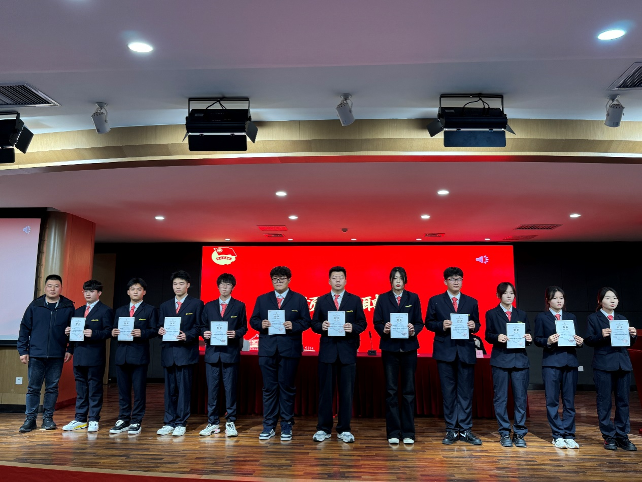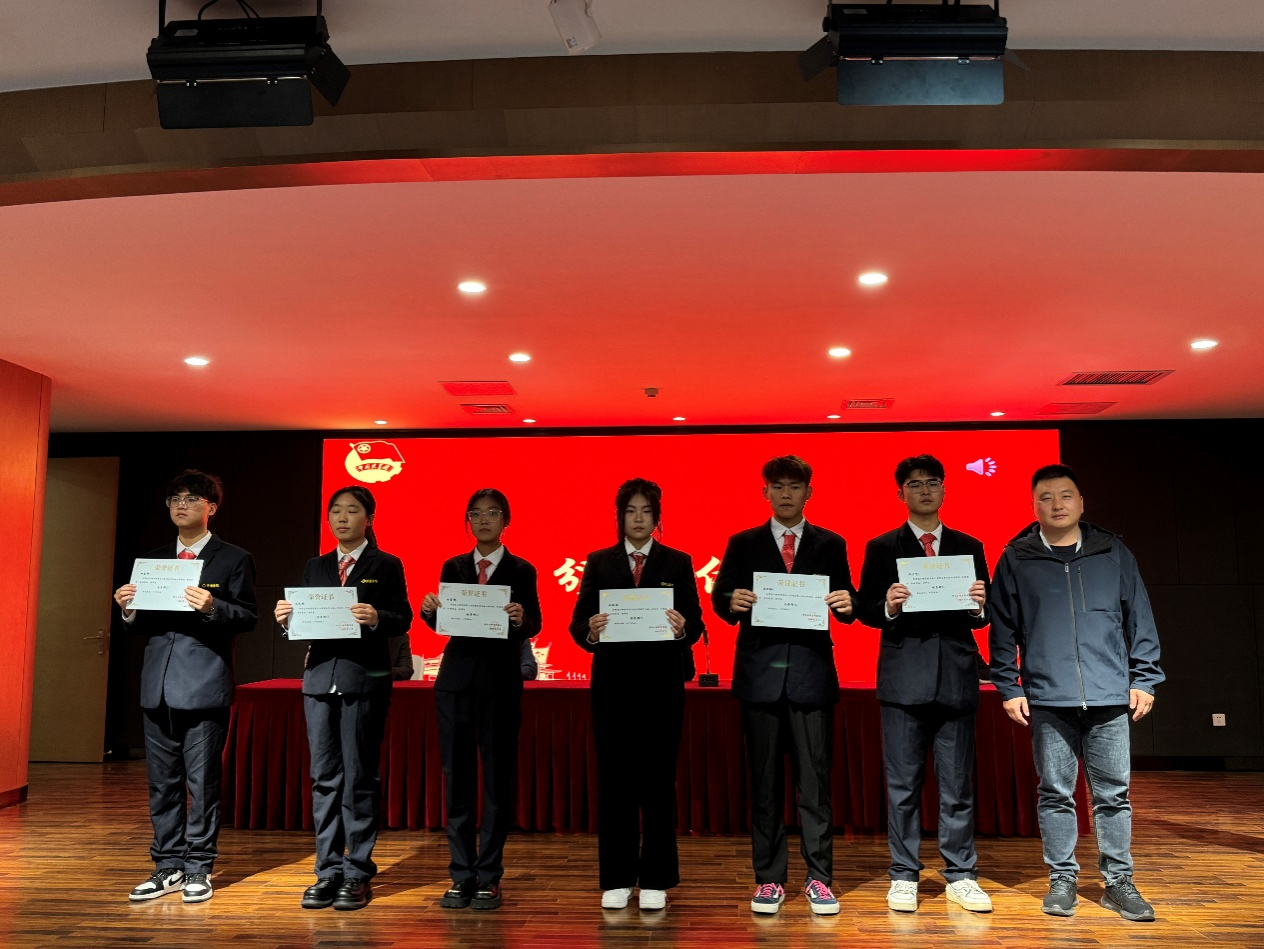 24级团总支书记赵征、22级团总支书记王建红和团委书记兼行政秘书王崇分别为员工会优秀干事、优秀部长、优秀部门颁发了奖状,党委书记李赵法为第三十届主席团成员颁发了证书和奖品,并合影留念。