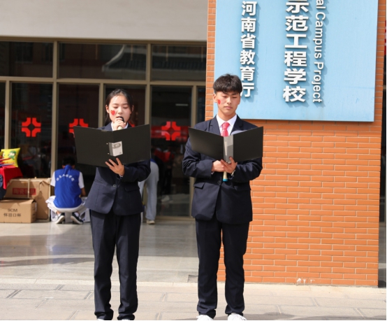 全体肃立,出团旗,奏团歌。启动仪式在全体同学嘹亮的歌声中拉开帷幕,共产主义青年团团旗在四名国旗班成员的护送下,缓缓通过人群前方。